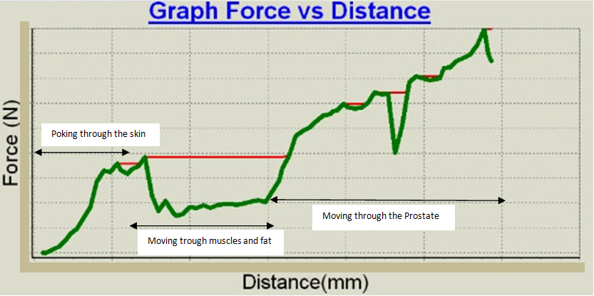 Real Time Graph (Prostate Phantom Device Test Bed) - of force as function of needle depth penetration